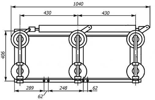 Чертеж разъединителя РЛНД-10/400 УХЛ1. Габаритные и присоединительные размеры.