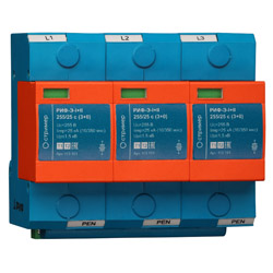 Мощное трехполюсное УЗИП класса I+II коммутирующего типа со сменными рабочими модулями на основе искровых промежутков. УЗИП предназначено для защиты оборудования в низковольтных цепях до 1000 В от прямых и отдаленных молниевых разрядов при воздушном или кабельном вводах электропитания.