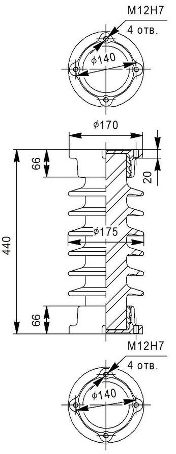 Чертеж и габаритные размеры изоляторов ИОС-35-500-01